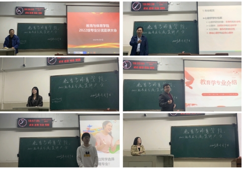 会议伊始,朱老师从专业概况、团队队伍、学科方向,优势与特色方面为大家详细介绍了应用心理学专业。王老师从专业定位、优势特色、团队力量,核心课程以及毕业要求等方面介绍了教育学专业。紧接着,杨老师从基本状况、培养目标、课程设置,发展前景几个方面介绍了学前教育学专业。陈博文和张可欣根据自身的学习成长经历分享了学前教育学的专业特色和体会感悟。最后,杜经理进行了总结。杜经理提出要结合个人兴趣,明晰分流选择,并祝福同学们都能择其所爱,得其所愿,在人生的道路上砥砺前行,早日成为那举大旗、担大任的新时代青年。