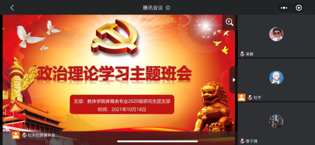 (通讯员:杜馨)为庆祝中国共产党成立100周年,进一步加强党史教育,领悟党的思想与精神,引导支部学习新思想、把握新动态,bevictor伟德体育组织全院研究生于10月间分班开展政治理论学习活动。