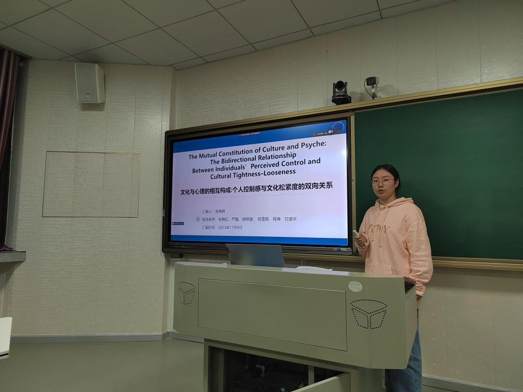 最后,张艳君汇报的文献探讨了文化与心理相互构成理论,文化能够塑造个体,个体的心理状态也能够影响文化。本研究建立在补偿控制理论的基础上,以检验个人控制感和文化松紧度的双向关系。结果发现,个人控制能力较低的人更倾向于更紧密的文化;个人控制能力较低的人对结构有更高的需求;对结构需求更高的个体倾向于更紧密的文化;对更高结构的需求在个人控制感和对紧密文化的需求之间起中介作用;更紧密的文化降低了个人控制感,但增加了集体控制感。