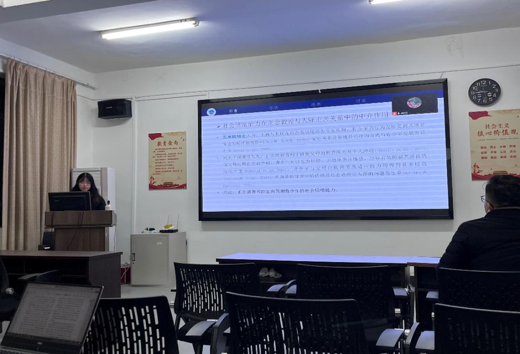 (通讯员:胡双双)2023年12月10日晚7点整,本学期青少年网络心理与行为第十一期例会在五教203正式开始,甘雄老师、周婷老师参加了本次例会,还有部分研究生和部分本科生也参与了本次例会中,会议过程十分热烈。