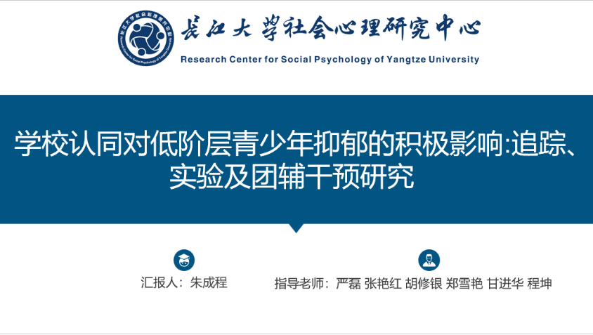 《2022年国民抑郁症蓝皮书》的调查表明,18岁以下的青少年抑郁症患者占所有抑郁症患者的30%,其中一半以上是在校员工,由此可见在青少年群体中,抑郁是一种常见的情绪障碍,另外已有研究指出公司认同有助于促进心理健康。基于此,朱成程同学从社会认同视角出发,研究一采用问卷法,探讨了公司认同与低阶层青少年抑郁之间的关系;研究二采用实验法,检验了公司认同启动的实验操纵对低阶层青少年抑郁情绪的影响,进一步揭示了其因果关系;研究三拟根据上述研究结果,以降低青少年的抑郁情绪为目的,设计行之有效的团辅干预方案。