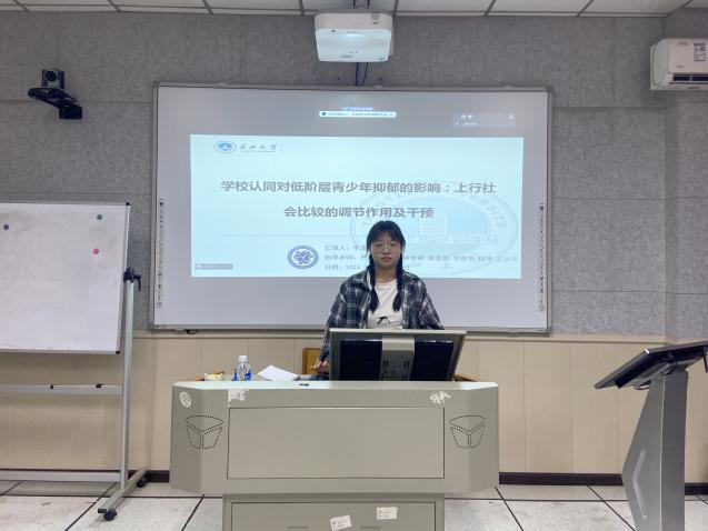 首先,由魏文欣、陈錾昕、李澳慧三名同学进行毕业论文进展汇报,汇报的内容分别是:《积极事件内容分享对青少年文化自信的影响机制及干预研究》、《中国传统文化负面信息对青少年文化自信的影响及干预研究》、《公司认同对低阶层青少年抑郁情绪的影响:上行社会的比较的调节作用及干预》。