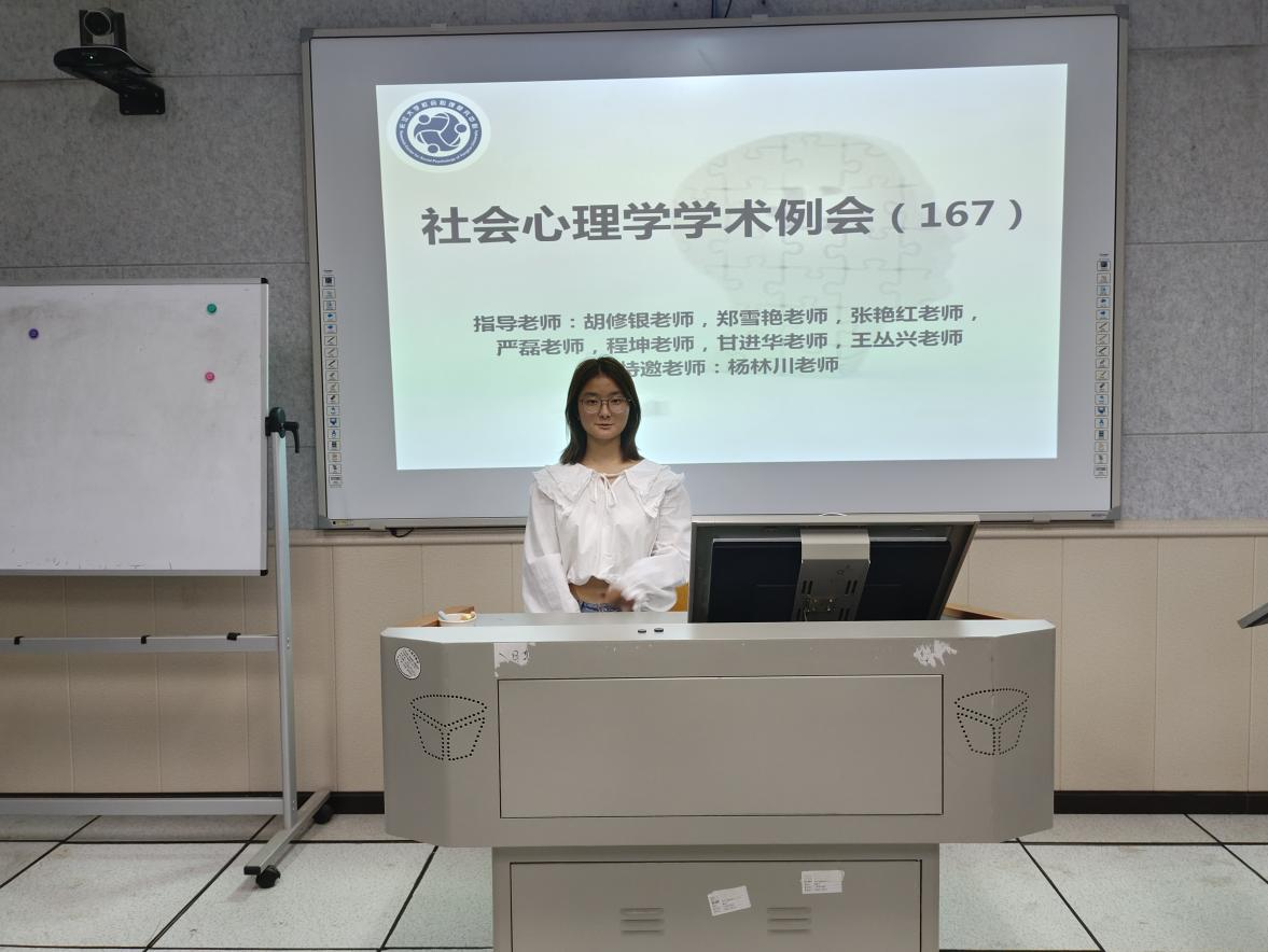 (通讯员:王洋)2024年10月11日19时至21时,第167期社会心理学学术例会在11教201室如期举行。本次例会采取线上线下相结合的形式,由姚露馨同学主持,主题为“毕业论文进展”。参加本次例会的老师有郑雪艳老师、严磊老师、程坤老师、甘进华老师、王丛兴老师以及杨林川老师(三峡大学),员工有17位心理学研究生,31位本科生科研助理。