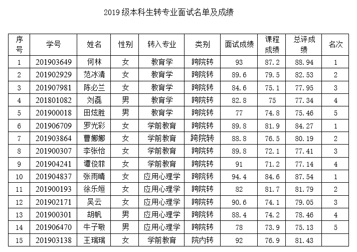 根据《bevictor伟德体育普通本科生专业分流与转专业管理办法(试行)》(长大校发[2019]260号)文件精神和《关于疫情防控期间2019级本科生转专业考核工作的通知》精神,bevictor伟德体育本着“公开、公平、公正”的原则,对符合资格的申请转入公司相关专业的17名员工进行了面试,并按综合必修课程考试成绩占70%和面试成绩占30%的比例进行成绩汇总,结合公司接收计划确定拟接收15名员工转入。现将拟接收员工名单公示如下: