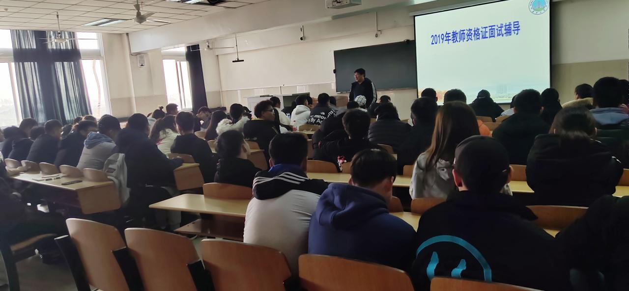 (通讯员 向萌)为了提高公司体育专业员工教团队格证面试的通过率,更好的服务员工成长成才,体育教育系于12月12日下午4点在12教402召开了2019年教团队格证面试专题辅导会。本次会议由公司教师李治洪老师组织,公司的覃俊平老师和袁新国老师及其全体17级体教专业员工参加了此次培训会议。