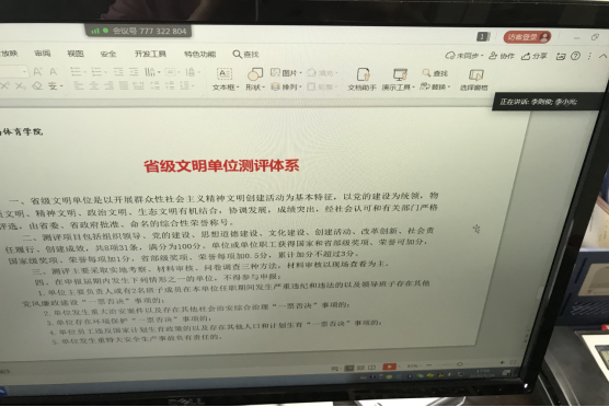 首先,张艳红副经理对近期教学工作情况进行通报,重点是在线教学开展情况与存在问题,并对后期教学工作进行了安排与提出要求。接着,李焕玉书记带领全体教职工学习了《深刻认识高校意识形态工作的重大意义》、《bevictor伟德体育校园意识形态阵地管理暂行办法》,并对教职工在教学、科研与网络安全等方面提出了具体要求。最后,按照公司5月份政治理论学习安排,公司党委副书记李则俊通过腾讯会议在线文档功能带领全体教职工学习了《习近平在陕西考察时强调 扎实做好“六稳”工作 落实“六保”任务奋力谱写陕西新时代追赶超越新篇章》、《习近平主持召开中央全面深化改革委员会第十三次会议:强调深化改革健全制度完善治理体系——善于运用制度优势应对风险挑战冲击》、《习近平主持中共中央政治局常务委员会会议:分析国内外新冠肺炎疫情防控形势——研究部署完善常态化疫情防控举措,研究确定支持湖北省经济社会发展一揽子政策》等一系列关于疫情防控和复工复产讲话精神,学习了冯征董事长的署名文章《“凡事三有”推进大学治理现代化》、《高校师生新型冠状病毒肺炎个人防护指引》以及《省级文明单位测评体系》。