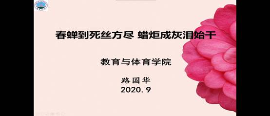 2020年9月2日晚上19点整,由杨青宝老师主持,路国华教授主讲的以“如何成为一名合格的体育教师”为主题的线上讲座成功举办。2017级体育教育专业全体员工参加了本次主题讲座。