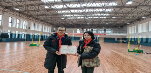 集团相关领导和杨青宝老师一起为红门路公司“水韵红门” 杯排球节中获奖班级颁发了证书。