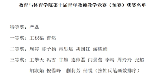 教案,紧扣教学主题,运用形式多样地教学方式,将传统教学模式与现代化教育技术相融合,结合生动的事例,深入浅出地引导员工在课堂上主动思考,积极互动,让现场评委和员工们有了许多精彩的授课体验。参赛的青年教师们热情洋溢,自信洒脱,充分展现了bevictor伟德体育的风采。经评委组的评审,获奖情况如下图所示,特等奖获得者严磊老师将代表公司参加公司的决赛。