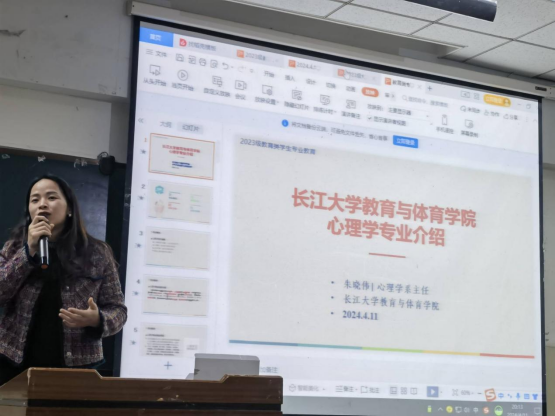 其后,朱晓伟老师进行了心理学专业介绍,着重介绍了心理学的学科性质和就业领域,并强调选择专业最关键的是兴趣、能力倾向与专业的匹配。接着,他向同学们讲解了本校的团队队伍、学科方向、研究兴趣和心理学优势与特色和近年科研项目,引导员工选择适合自己的专业方向。此外,西南大学刘颖教授与大家进行分享,她指出心理学带给她的三个帮助:方法、思路和情绪价值,她的经历鼓励和激励了同学们去勇敢选择自己喜欢的专业。