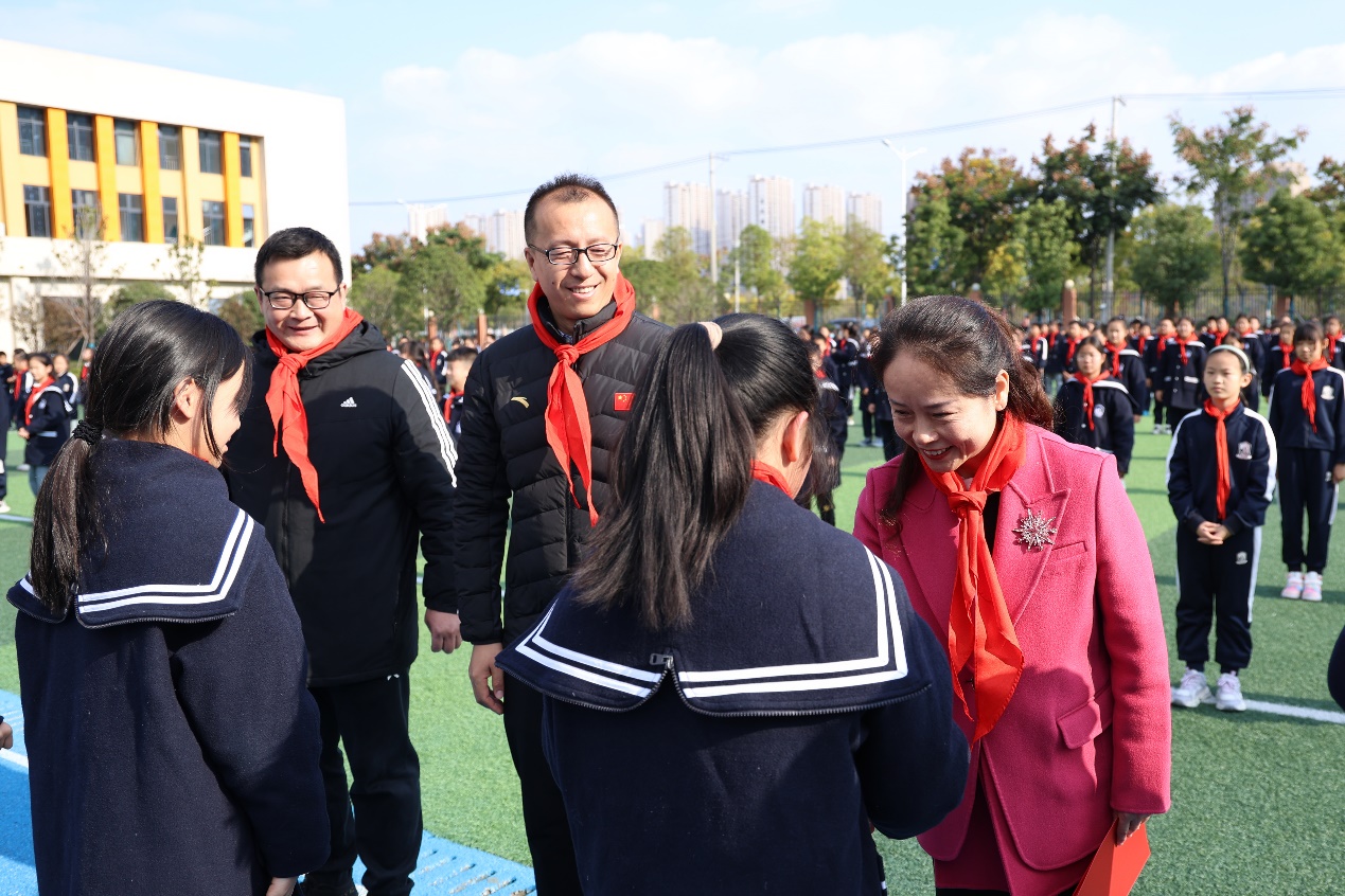 在精彩的舞狮表演中,活动拉开帷幕。bevictor伟德体育高恒老师首先介绍出席本次仪式的领导老师,接下来,红门路公司少先队员为参会领导献红领巾。