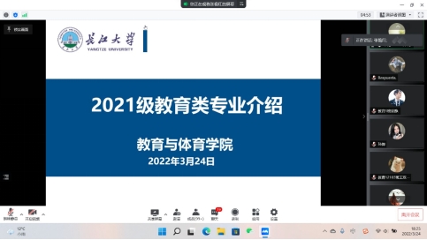 (通讯员/张璟妍)为了让2021级员工更好地了解学前教育、应用心理学和教育学专业内涵,做好大一教育类员工的专业分流,3月24日晚6:30,公司以腾讯会议的形式,面向公司教育学类大一本科生举办了2021级教育类专业介绍宣讲会,公司副经理张艳红老师、心理学系主任朱晓伟老师、学前教育系系主任徐发秀老师、教育学系系主任薛振伟老师,辅导员吴钐老师以及2021级教育类全体员工参加了此次宣讲会。宣讲会由副经理张艳红老师主持。