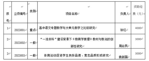 为了进一步深化公司公司产品改革,不断提高公司产品质量和教学管理水平,引导教师积极参加教学改革与研究,根据公司《关于申报2023年度教学研究项目的通知》、《关于2023年湖北省本科高校省级教学改革研究项目(大学体育专项)立项申报的通知》,经过教师申报、教学委员会评审,《高中语文专题教学与大单元教学之比较研究》等3个项目批准为2023年院级教研立项项目。现就有关事宜通知如下: