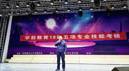 张相乐经理在开场致辞中谈到,世界上最难的工作是培养人的工作,在培养人的工作中最难的是幼儿园老师,非常感谢学前教育专业的员工能选择这份专业。最后,他预祝同学们本次舞蹈考核人人过关,也预祝此次舞蹈汇报演出圆满完成。