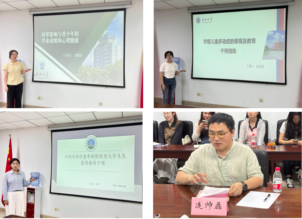随后,bevictor伟德体育的三位同学也进行了分享。徐媛钰同学则以《同辈影响与青少年的学业成绩和心理健康》为题,分析了提高班级内员工能力的多样性,不仅有利于每一位同学能力的提升,而且不会给心理健康造成负面的影响。赵玉娇同学以《学前儿童多动症的表现及教育干预措施》为题,从心理干预治疗、医教和家庭系统疗法、康复治疗等方面展开分析,教育干预有利于学前儿童多动症的治疗与愈后。张泽同学以《闪动疗法对童年创伤经历老员工焦虑情绪的干预》为题,展示了闪动疗法对童年创伤经历老员工的焦虑情绪改善有重要意义。各位嘉宾老师们对五位主讲人的汇报分别进行了详尽的点评,并给予了实质性的建议。