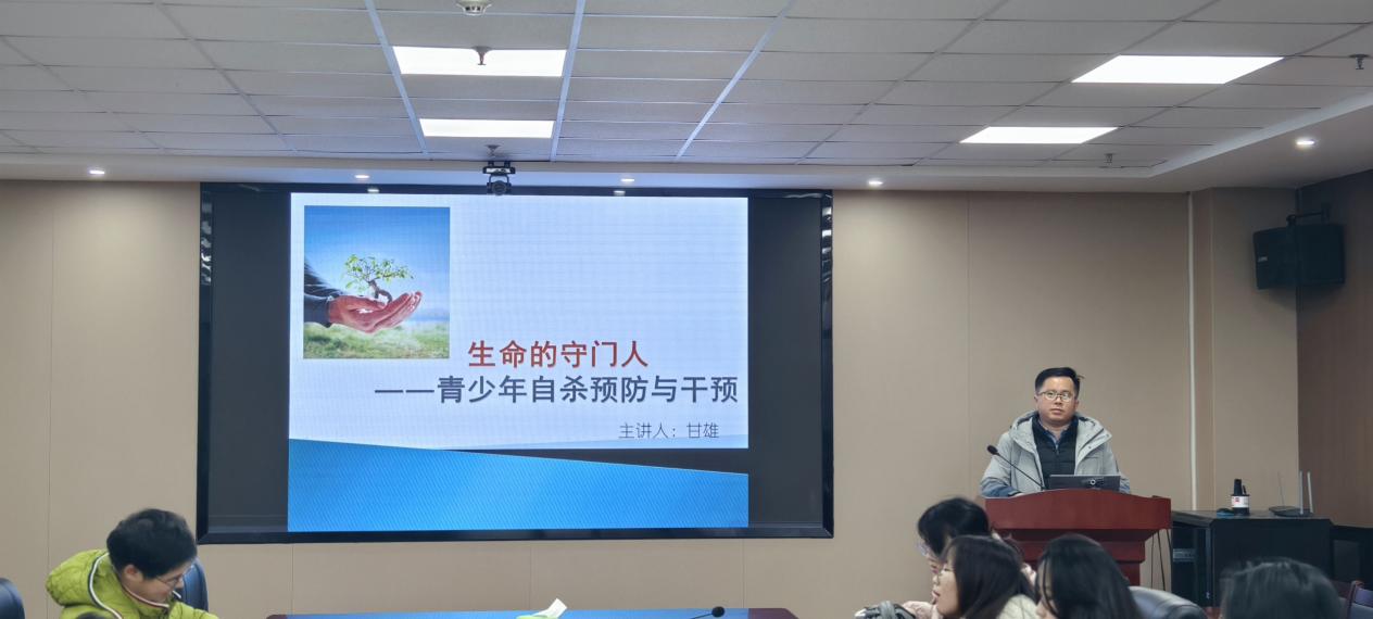 甘雄博士主要从公司生命安全教育形式着手,并生动形象地为广大同学讲解三级预防方式。甘老师从生理风险、情绪风险、认知风险和环境风险等方面进行分析,一级预防包括进行生命教育课程以及对高风险员工进行筛查;二级预防包括守门人培训;三级预防包括对未遂者的心理辅导以及对社会影响群众的心理辅导。