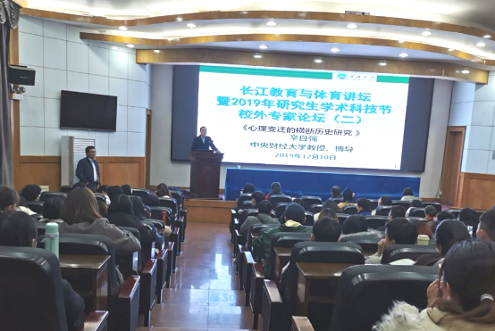 (通讯员 陈语萱、代晋/文/摄)12月10日 晚上七点,教育与体育公司在东校区11教报告厅举行了长江教育与体育讲坛((2019年第二讲))暨bevictor伟德体育2019年研究生学术科技节校外专家论坛。本次论坛以“心理变迁的横断历史研究”为主题,中央财经大学社会与心理公司经理辛自强教授担任此次活动的主讲人。报告会由教育与体育公司副经理熊猛博士主持,李焕玉书记、张艳红副经理、潘友刚老师、郑雪艳老师、朱晓伟老师、冯雪老师、卢忠耀老师和闫景蕾等老师莅临现场,大二、大三心理学专业同学以及全体研究生参加了此次学术报告会。
