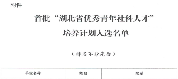 公司两位教师入选首批“湖北省优秀青年社科人才”培养计划