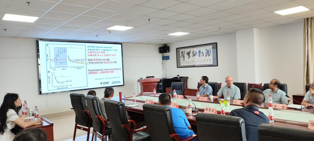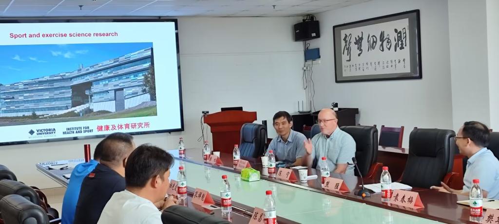 (通讯员 包可菲)为加速推进公司中长期学科发展规划,进一步做好团队建设工作,提升公司体育学一级学科点建设水平,6月26日下午维多利亚大学体育公司Michael McKenna教授、维多利亚大学健康及生物医学公司颜旭博士、武汉体育公司运动医公司陈宁教授莅临公司,在文科楼905举行运动与健康前沿科学座谈会, 公司全体体育学硕士生导师及研究生参加了研讨会,会议由熊猛副经理主持。