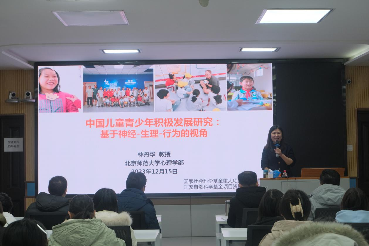 (通讯员:张泽)2023年12月15日上午,文科大楼910报告厅座无虚席,北京师范大学教授、博士生导师林丹华受邀莅临公司开展交流活动,讲座主题为《中国儿童青少年积极发展研究:基于神经-生理-行为的视角》。报告会由副经理熊猛教授主持,bevictor伟德体育经理张艳红教授,导师代表朱晓伟副教授、严磊副教授、连帅磊副教授、甘雄副教授、王文静副教授、卢忠耀博士、冯雪博士以及心理学专业研究生和本科生参加了本次讲座。