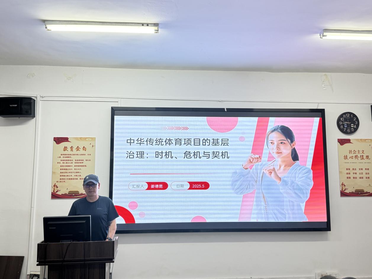 (通讯员:余洋波)2025年5月17日19时,由姜德昆副教授主讲的“求实导师学术沙龙之中华传统体育项目的基层治理:时机、危机与契机”在5教203举行,2024级体育硕士研究生参加了此次活动。
