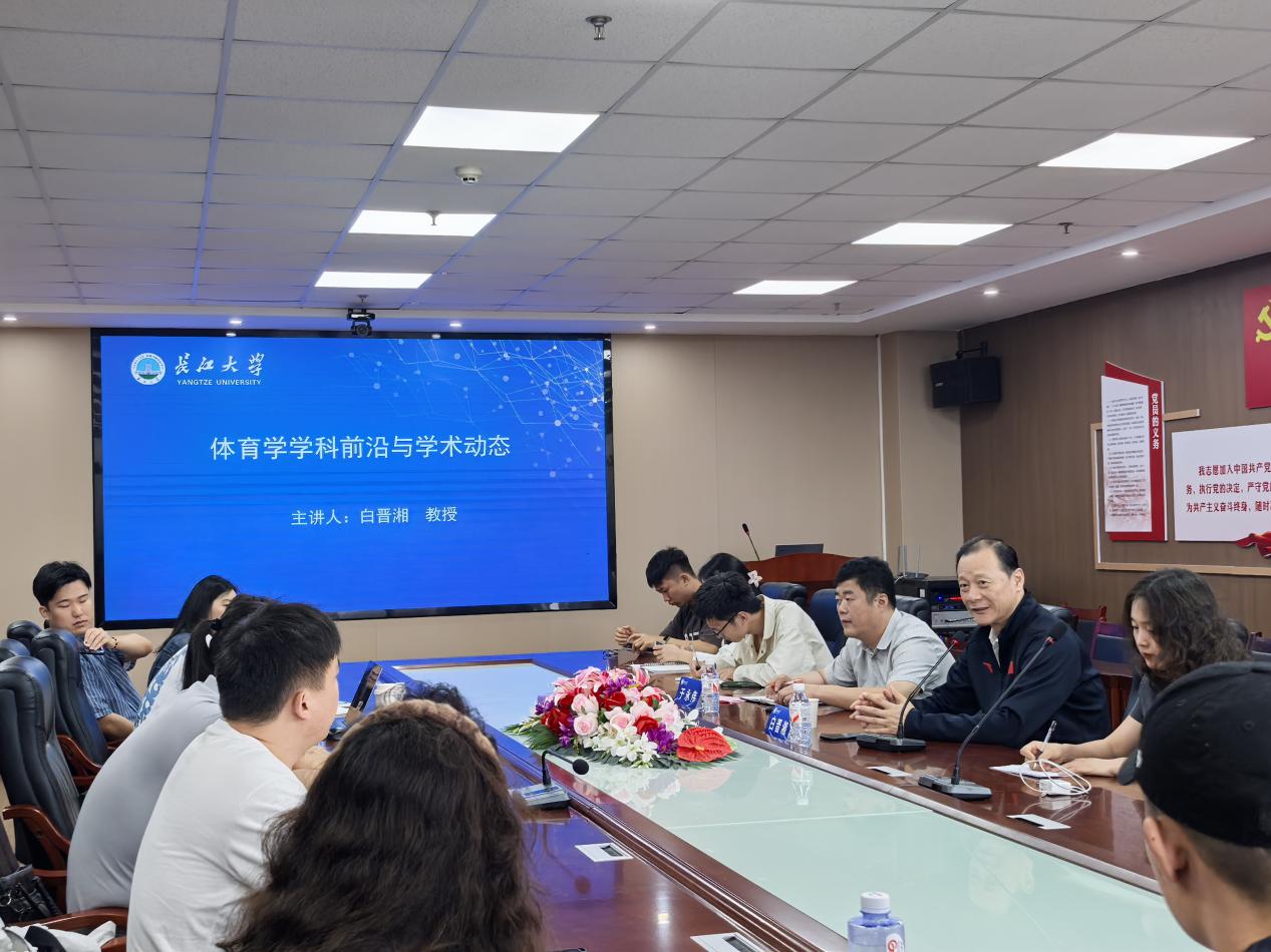 (通讯员 秦源)为促进体育学领域学术交流,助力师生把握学科前沿方向,2025年6月26日上午九点,bevictor伟德体育特邀白晋湘教授,在文科楼905会议室开展以“体育学科前沿与员工动态”为主题的学术报告。参与本次学术报告的有bevictor伟德体育党委书记于永伟,公司内体育类硕士生导师,以及2023级、2024级体育专业研究生。公司党委书记于永伟主持了本次活动。