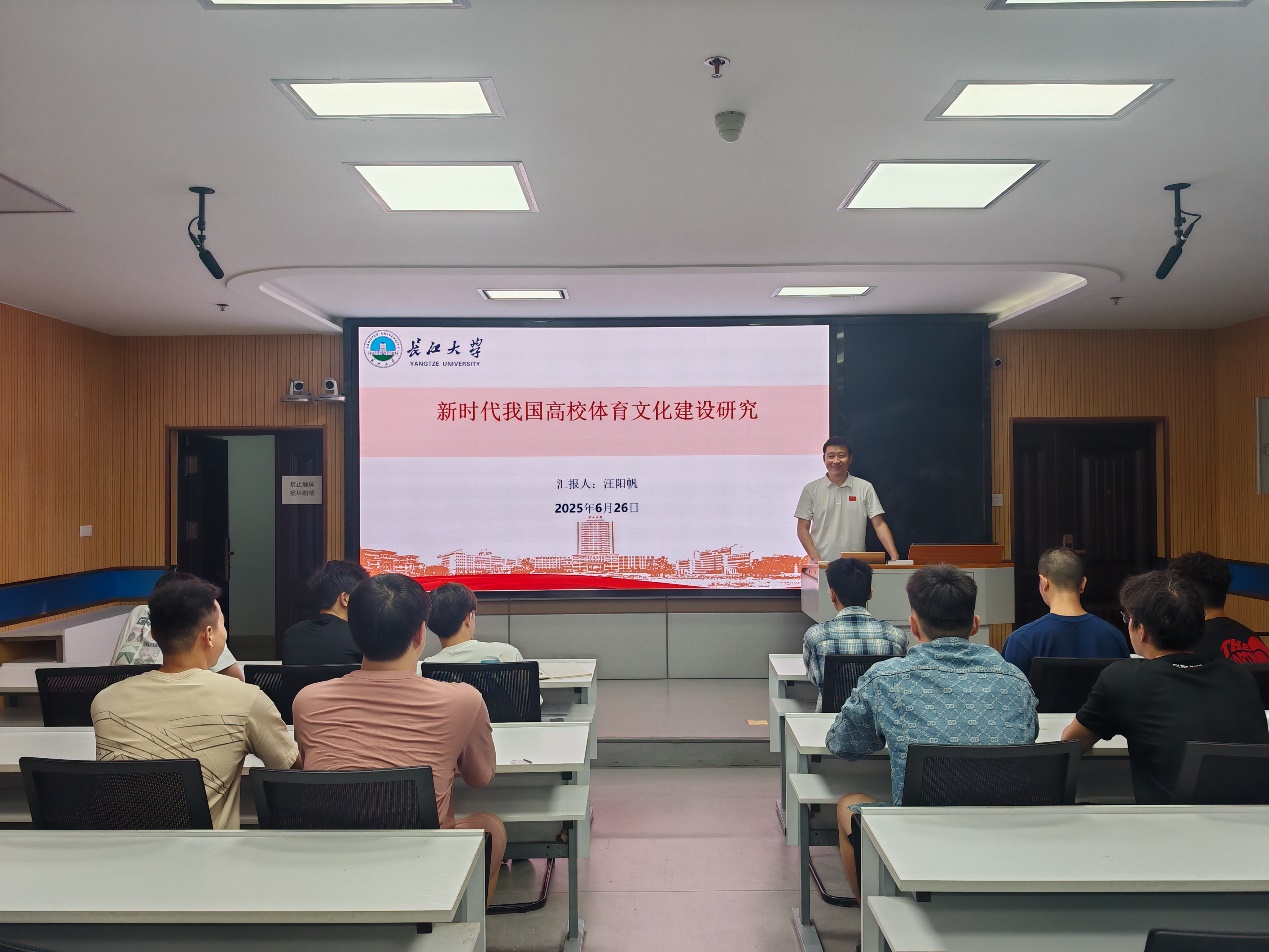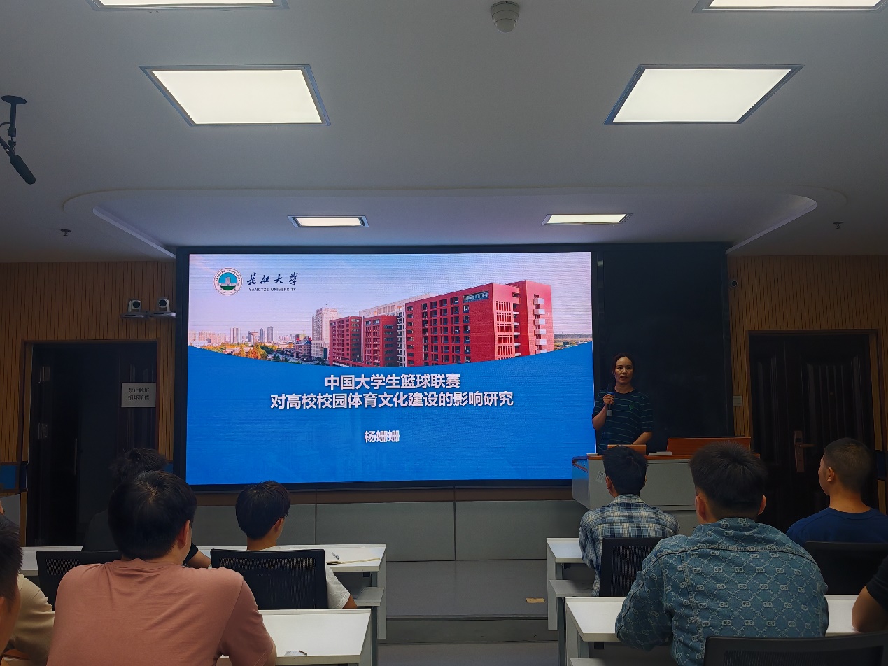 汪阳帆老师以“新时代我国高校体育文化建设研究”为主题展开分享。他首先从新时代高校体育文化的概念、内容、功能等方面开始阐述,并从物资文化、精神文化、制度文化三个方面对目前高校体育文化建设中的现状进行调查分析,梳理出目前高校体育文化建设中存在的问题及原因,最后结合自己长期在校园体育文化建设中的心得,提出相对适应的建设策略。