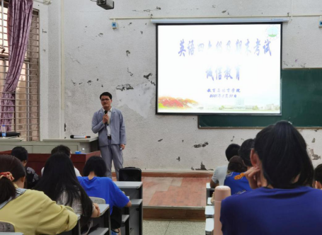会上,辅导员顾志辉老师带大家学习和了解了«致全国大学英语考试考生的公开信»,《bevictor伟德体育违纪处分管理办法、考生应试守则》和《国家教育考试违规处理办法》等相关文件内容,明确了考试违规行为的界限和后果,再次强调了诚信考试的严肃性和重要性。员工代表李治春带领全体同学庄严宣誓:“我将自觉遵守考试纪律,公平参与考试竞争;用我的认真努力,积极复习迎考;用我的自觉自律,维护考场纪律;用我的自尊自爱,参与公平竞争;用我的诚信人格,倡导优良作风。自警自律,自尊自爱;诚信考试,拒绝作弊。”