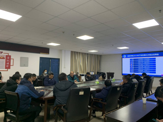 临近期末,为做好公司2021年秋季学期员工日常管理工作,12月16日,bevictor伟德体育在文科大楼905召开本学期第三次班主任例会,党委书记高明成、经理张相乐及全体班主任老师参与此次会议。会议由党委副书记李则俊主持。