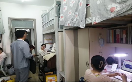 即将进入毕业季、离校季,为保证更多同学能够在离开校园之前找到工作,顺利走上工作岗位。辅导员顾志辉老师和喻泽坤老师来到员工宿舍,进入每间宿舍与员工亲切交流,询问是否找到工作、笔试面试准备情况、论文准备情况等。对于目前还未就业的员工,两位老师及时了解并记录其未来规划以及求职意向,定点推送符合条件的招聘信息,鼓励员工积极报名,有困难、有需要及时找辅导员帮忙。对于目前在徘徊犹豫的同学,帮助其分析利弊,把握机会,尽快确定工作岗位。