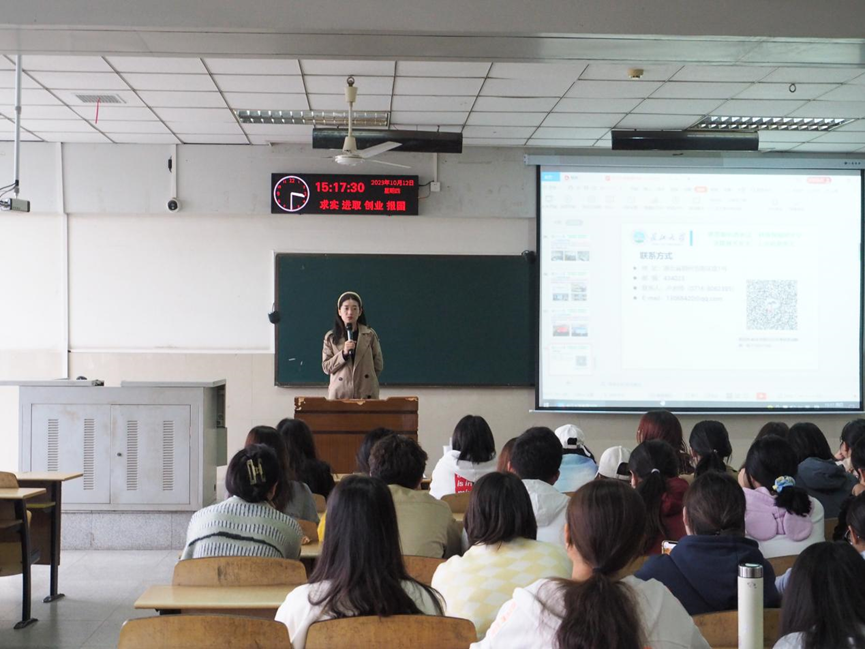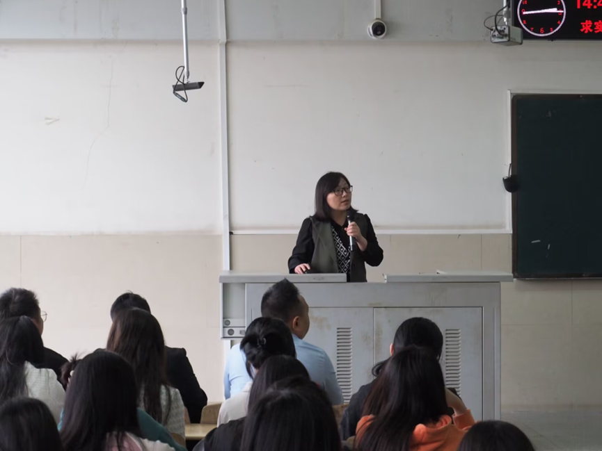 随后,来自海文考研机构的吏涛老师给同学们分享考研常识。吏老师分别从考研的竞争格局全维度解读、院校专业选报方案、公共课及专业课考核要求三方面阐述了当前考研形势,举例分析报考漏洞,使同学们充分掌握考研第一动态。他表示,报考的目光不能只局限于某个公司或专业,需要结合自我竞争力与社会需求,进行正确的的选择与规划。经过吏涛老师深入浅出的解说,同学们对考研宏观布局有了进一步的认识。为表示对同学们的诚挚祝福与殷切期盼,海文考研机构向参会员工发放了免费的学习资料。