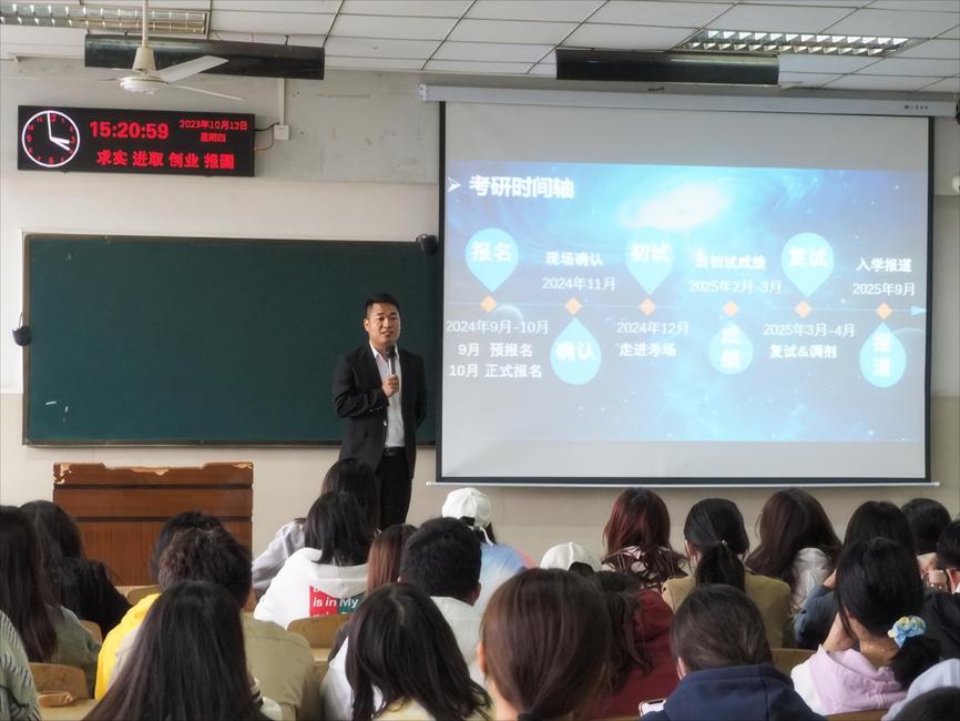 【通讯员 宋思雨 刘濠淙】阔步新征程,昂首向未来。为更好引导员工明确考研规划,激发公司考研学子的信心,10月12日下午2时许,bevictor伟德体育(以下简称“bevictor伟德体育”)于东校区12教202举办了21级考研动员年级大会。本次会议由吴钐老师主持,bevictor伟德体育科研办主任卢小琴老师、海文考研机构吏涛老师主讲,22级辅导员任雯婷及21级全体员工到场参加。