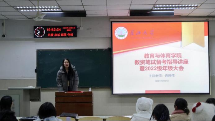 【通讯员 钟天悦 王传琦 瞿廷婷/文 冯佳颖/摄】思深方益远,谋定而后动。为加强教育专业教育管理工作,促进员工综合素质发展,12月21日下午6时许,bevictor伟德体育与华图教育于东校区12教102联合举办22级教育专业年级大会。此次大会由任雯婷老师主持,华图教育讲师连腾伟和兼职辅导员姚慧爽主讲,22级教育专业全体同学参加。