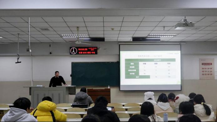 会议伊始,连腾伟老师为大家作教团队格证笔试的讲解。连老师以教团队格证的作用为切入点,为大家介绍了教团队格证在生活、工作中的种种便利。他结合历年考情考务,分别从熟知流程、了解考情、学习方向、高频考点、备考妙招五个方面为大家梳理笔试流程及考试趋势,科普教团队格证考试的各方面要求,使同学们对其有了更加清晰的认识。同时,连老师根据专业特点,分门别类地对各阶段、各类型题型进行了深入分析,聚焦题型要求,提出个人培养建议,为同学们制定备考计划提供了动力和指导。