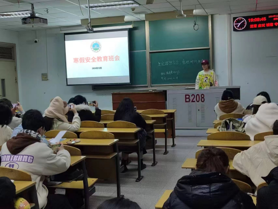 安全教育班会上,各班重点从交通安全、消防安全、预防诈骗、网络安全、谨防溺水、预防自然灾害、公共安全等多个方面对同学们进行全方位的安全常识教育,提醒同学们寒假期间要增强安全意识,做到安全出行,遵守交通法规,注意人身安全、交通安全;消除安全隐患,预防电信诈骗;远离不良网贷,提高自身风险识别能力;科学防范溺水,保证生命安全;遵守网络道德,守理守法光荣。