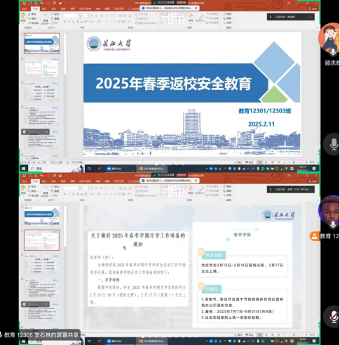本次活动由研究生、本科生辅导员以及班主任为主导,班委积极组织,以年级或班级为单位进行。在班会上,辅导员和班主任们首先强调了寒假返校的重要性和紧迫性,然后详细讲解了返校的时间节点、具体流程和相关要求。