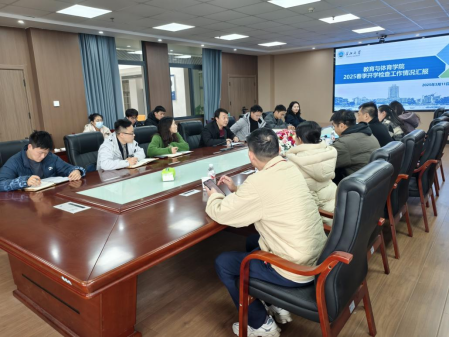 随后,公司学工办主任顾志辉对2025年春季开学检查工作情况作了汇报,详细介绍了员工返校情况、心理工作情况、学风建设情况、员工安全管理、典型树立情况。