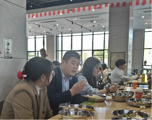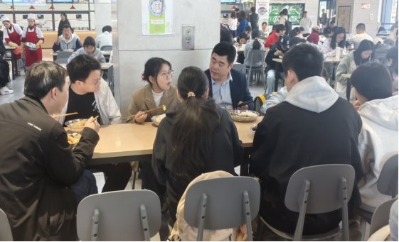 (通讯员:金楚悦)2025年3月21日中午12时,公司党委书记于永伟、副书记何可可携学工办主任顾志辉和兼职辅导员金楚悦,与五名大四考研学子齐聚东校区四食堂,在热气腾腾的午餐时光中展开了一场“零距离”午餐交流会。这场别具一格的交流会以“精准答疑+实战赋能”为主线,为冲刺复试关键期的学子注入强心剂。