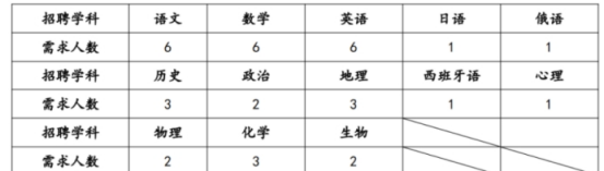 神农架林区高级中学(9人):其中语文1人、数学1人、英语1人、物理2人、生物1人、政治1人、地理1人、心理健康教育1人。