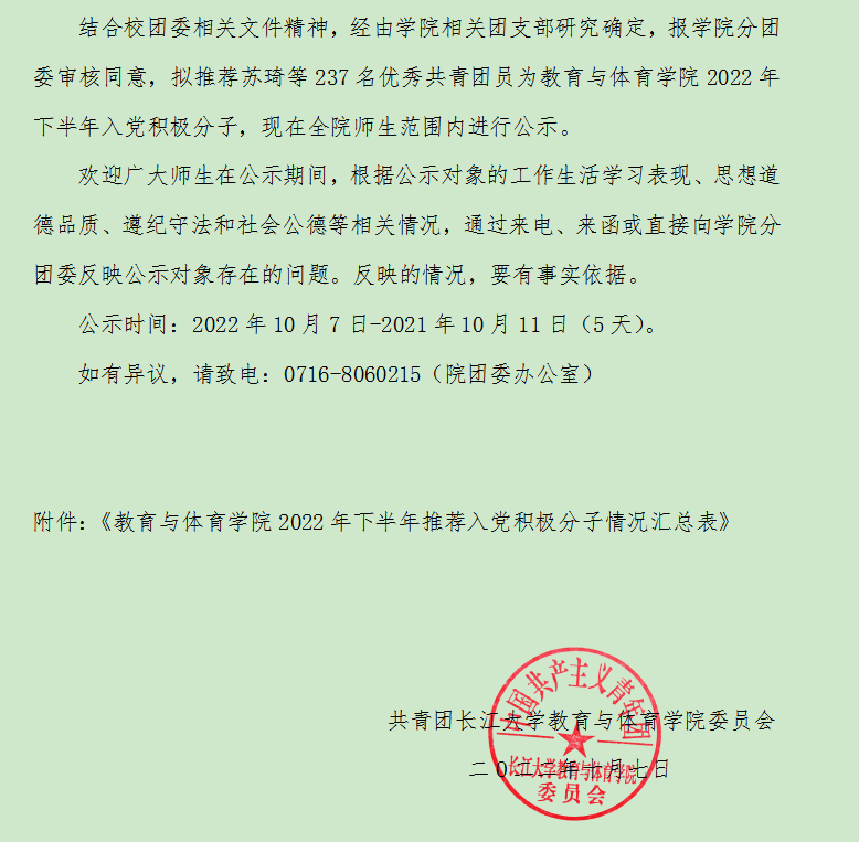 关于拟推荐苏琦等237名优秀共青团员为2022年下半年入党积极分子的公示