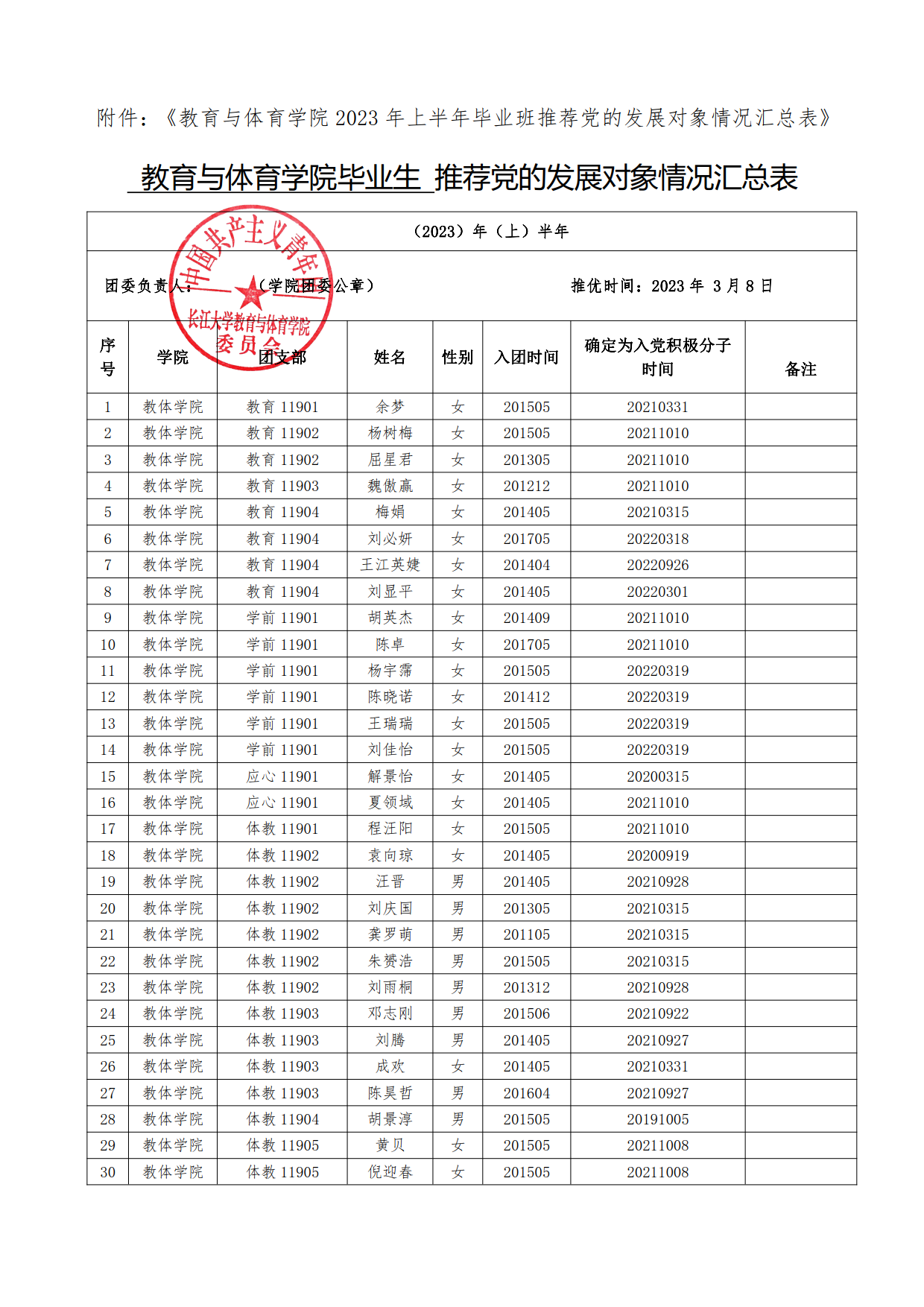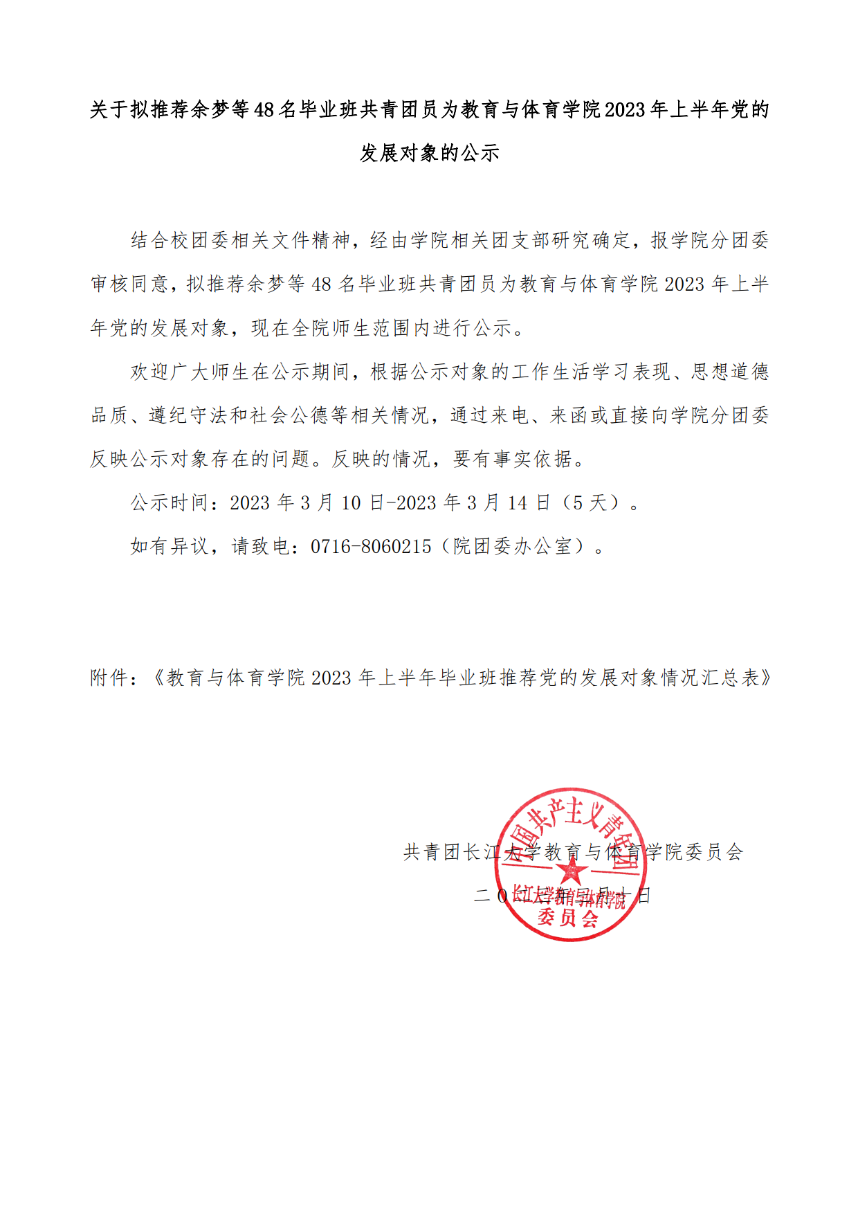 关于拟推荐余梦等48名毕业班共青团员为2023年上半年党的发展对象的公示