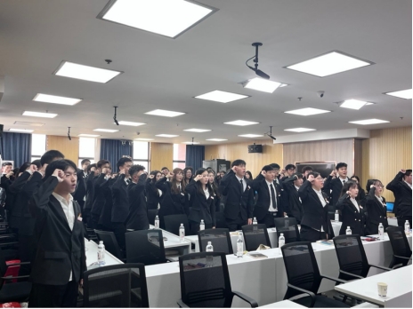大会伊始,全体肃立,奏唱国歌。紧接着李则俊副书记围绕如何做好一名员工干部为主题进行了精彩致辞,他首先言明员工会的宗旨是“服务同学,提升自我”,接着从加入员工会的目的、员工会的任务、如何做好员工会干部等五个方面进行讲述。他还提到作为员工干部,要注重提升学业能力,树立威信,更要积极配合老师完成相关工作,组织同学们开展文娱活动,营造公司独有的氛围。会议第二项,由李则俊老师为主席团颁发聘书,李振武老师为各部门主要负责人颁发聘书。在风采展示环节中,各部门的风采视频精彩纷呈,乐器、舞蹈齐上阵,工作、团建遍开花,充分展现了员工会成员们积极向上的精神面貌。
