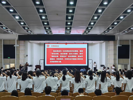 最后,校团委书记毛德波老师提出三个新要求:争担当、练本领、真感情。回顾选拔、培训志愿者的过程,我们发现志愿者的身影已到达各个地方,志愿红已成为大街小巷最亮丽的风景线。萤烛末光,增辉日月。一份甜美的微笑,一句暖心的问候都成为点点微光,彰显公司的文明与温度,让志愿精神成为时代新风。本次动员大会在志愿者们的宣誓中落下帷幕,一声声激昂慷慨的宣誓,既是志愿者们的决心,也是他们对长大送上的最真挚的祝福。