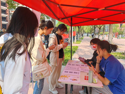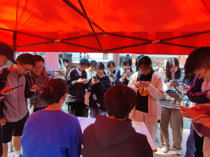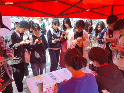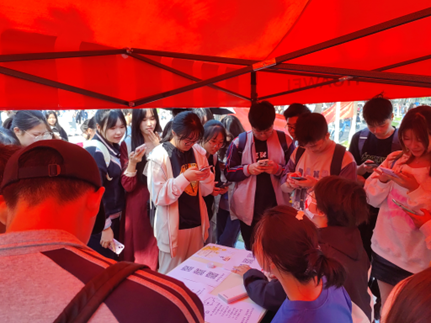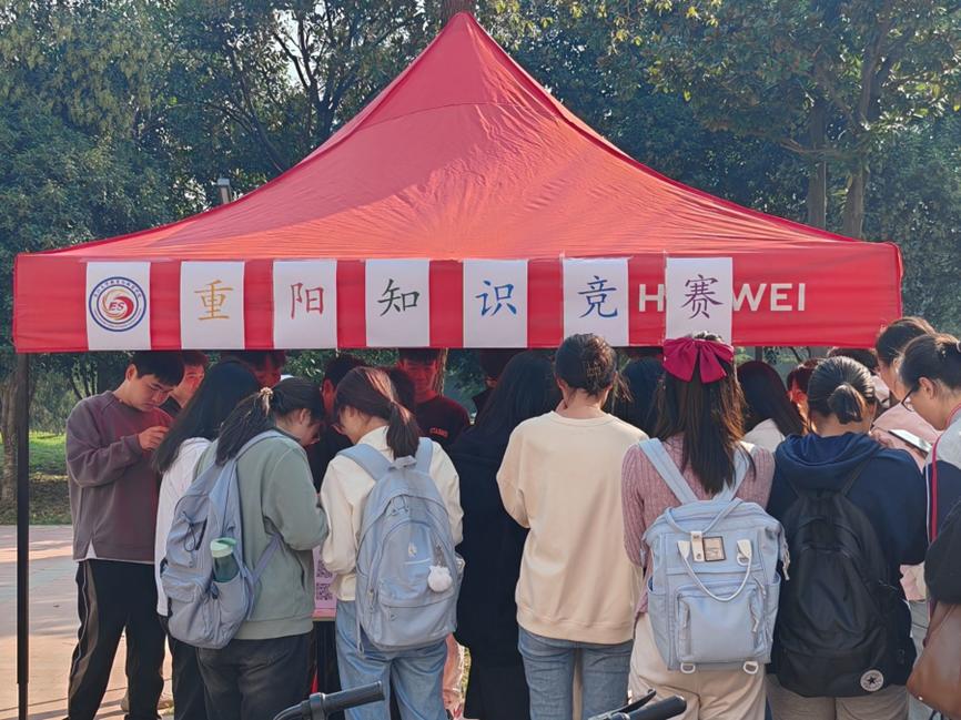 清晨,实践部相关负责人提前到场布置摆点。活动一开始,小小的棚子旁便聚集了前来答题的同学,在活动值班人员的引导下,大家纷纷扫码进行线上答题,并在答题后获得笔记本、签字笔、书签等小礼品。参赛员工热情洋溢,现场氛围如火如荼。知识竞答题目涉及重阳节的起源、传统习俗、文化内涵等方面,旨在通过竞答的形式,让参与者们更加深入地了解重阳节文化背景和内涵。本次重阳知识竞赛活动最终在大家的欢声笑语中落下帷幕。来自教育12201班的瞿廷婷同学表达了对此次活动的支持:“重阳这一绵延千年的传统节日,其蕴含的敬祖、敬老、孝道、感恩的美德通过此次活动‘润物细无声’地深植到了我们心中,希望以后也可以更多地开展这类活动,让同学们潜移默化地感受传统文化的魅力。”
