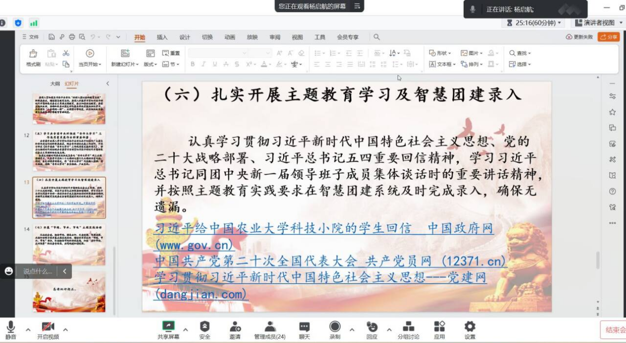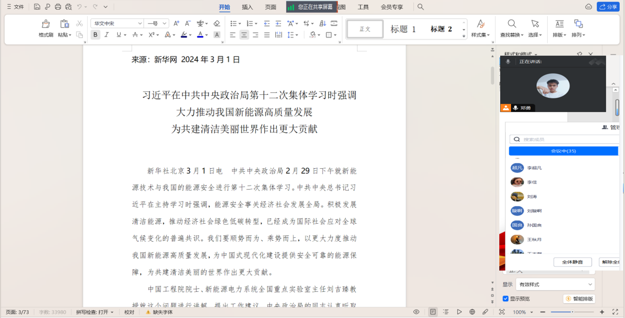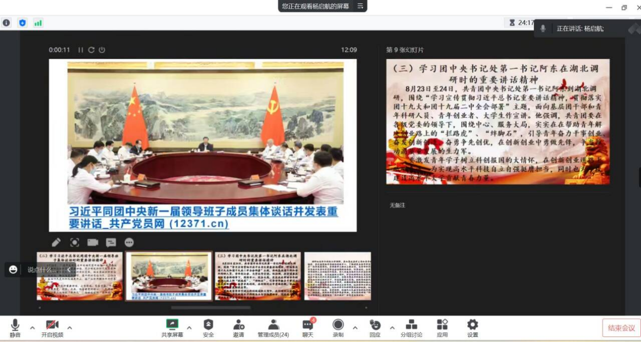 【通讯员 金楚悦】2024年3月15日至29日,公司全体研究生开展了三月份政治理论学习。各班采用了线上与线下、集体学习与个人自主学习相结合的方式,由团支书进行组织,辅导员陈佳琳老师参与、督促学习。