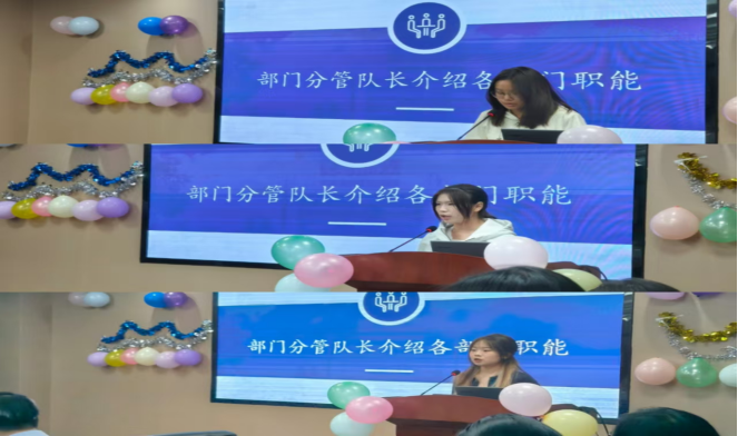 随后,办公室部长张少菡,组织培训部部长姜静怡,分管宣传部副队长黄嘉颖分别详细介绍了各部门职能,以帮助力博新成员深入了解各自的职位与责任。