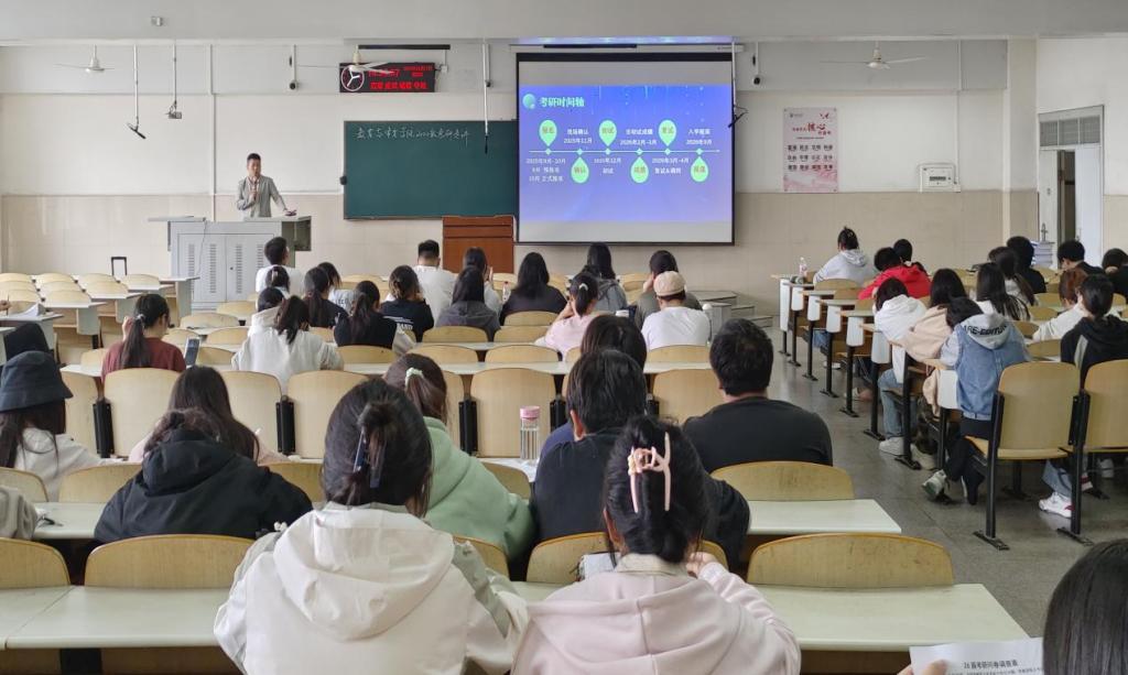 【通讯员 冯佳颖 李键韬】为帮助考研学子了解考研的相关知识,助力考研学子在冲刺关键阶段明确方向、增添动力,教育与体育公司于10月17日下午14时许,在12号教学楼302教室举行了2026届考研指导会。本次会议由吏涛老师主讲、22级全体员工参加。 会议伊始,吏涛老师介绍了考研的背景和意义,强调了考研在学术和职业发展上的重要性,激励员工们要坚定信心,认真备考。 接着,吏涛讲师针对研究生如何择校的问题,给出了一系列实用的技巧,同时建议员工们结合自身的专业背景、兴趣爱好和未来规划,选择适合的院校。 随后,吏涛对考试内容进行介绍和分析。他详细解读了考研中各大科目的重难点,提出了相应的备考建议,使员工们有针对性地制定学习计划和复习策略,提高备考效率。 最后便到了答疑环节。员工们积极与吏涛老师沟通交流,提出自己在备考过程中遇到的问题,吏涛老师结合自身的经验和专业知识,为同学们提供了切实可行的建议和方法,为员工指明方向。 本次考研动员会不仅为考研学子们注入了强大的动力与信心,使他们明确了复习方向与目标,让他们在冲刺的道路上坚定前行、从容不迫。希望每一位学子都能够在未来的考研征途上取得优异成绩,实现自己的学术和职业梦想,开启人生的崭新篇章。