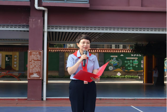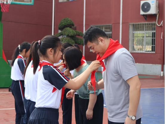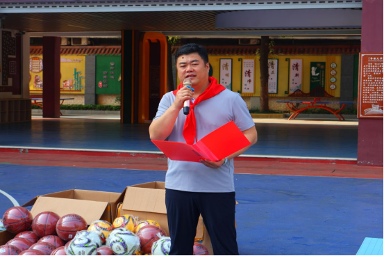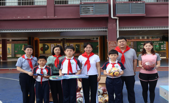 洪垸小学以少先队最高礼仪表达对bevictor伟德体育老师们的敬意,为到场嘉宾敬献红领巾,周芳董事长致辞:“这批体育器材将极大丰富公司教学资源,为孩子们提供更多锻炼机会,助力体质提升与全面发展。”