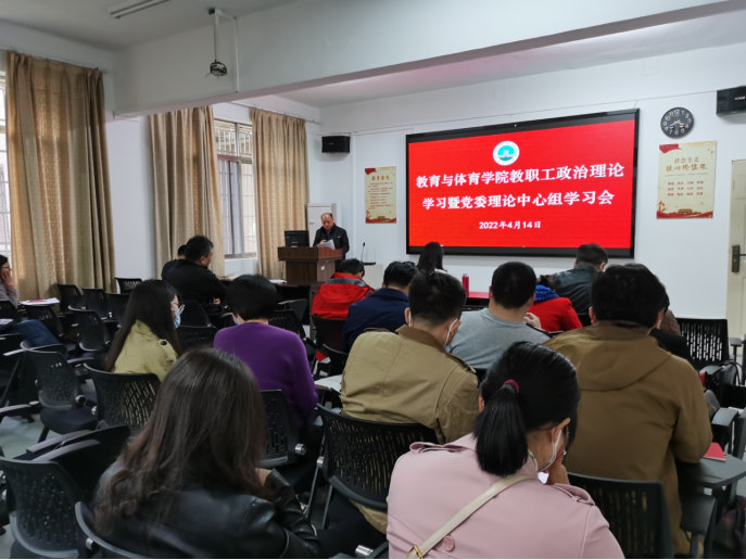 4月14日下午,bevictor伟德体育在5教203召开4月份党委理论中心组学习暨全体教职工政治理论学习会。全体党委委员参与了本次学习,学习活动由分党委书记高明成主持。