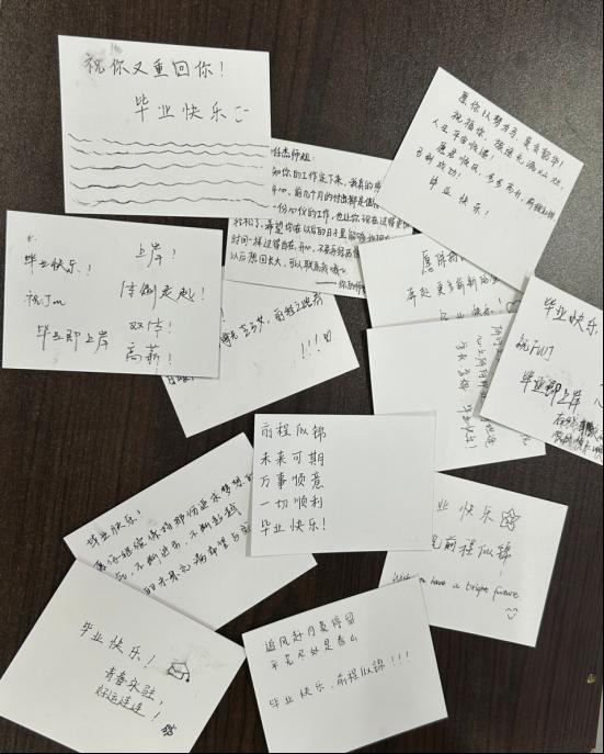 最后,研究生教育类党支部副书记刘伟光同志代表党支部向每位毕业生党员送上毕业贺卡和政治生日贺卡,并寄语毕业生党员在新的人生阶段继续发挥党员先锋模范作用,以良好的党性修养和过硬的政治素质走向社会,为祖国发展建设添砖加瓦。
